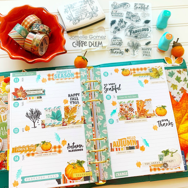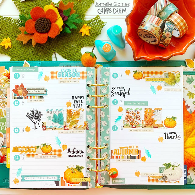 Fall theme continues in my weekly layout in November. I used the combo sticker and some of fall washi tapes from a couple of different collection. One set from the "Fall Farmhouse" and the other set from "Forever Fall"