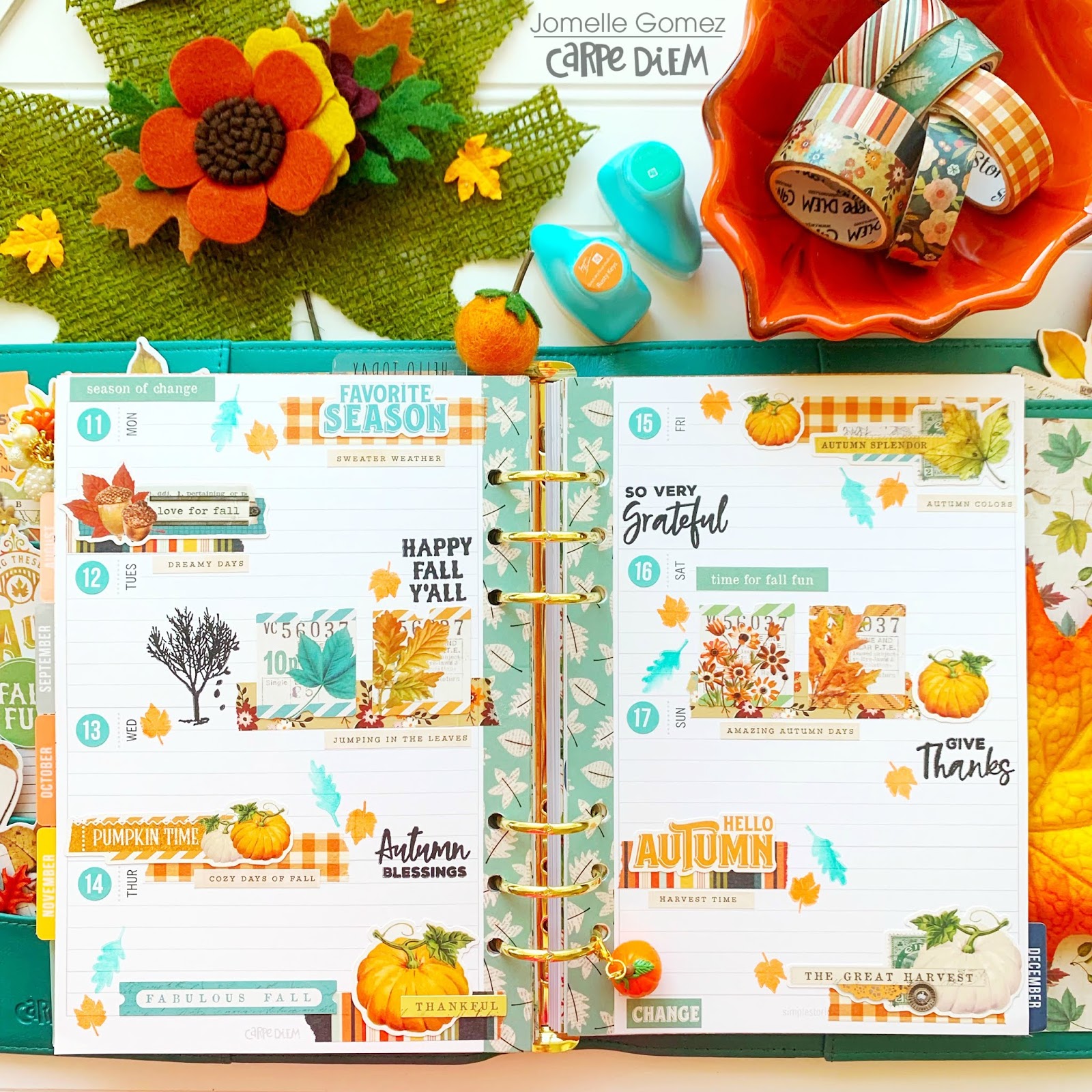 I just love everything about Fall that I had to set up another planner with a cozy autumn theme. This time I used my Teal A5 planner with the Autumn Splendor Collection.
