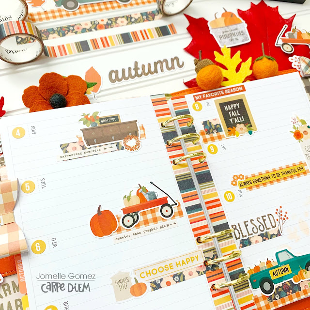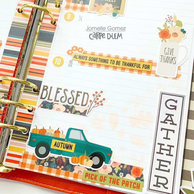 I also decorated the first week of November with the fall theme. Decorating my weekly layout is super easy with the all wonderful embellishments and stickers that came with this collection. As you can see in my layout, I also layered couple of washi tapes and added sticker on top.